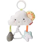 • Stroller toy features two-sided plush clouds and stars for multisensory engagement.