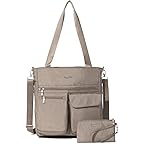 - Inspired by one of our best-selling styles, the thoughtfully designed Baggallini® Modern Everywhere Tote Bag features easy-access front pockets with plenty of room for all your must-have items. Effortlessly switch between a crossbody or shoulder style with an easy-to-adjust detachable crossbody strap, and protect your peace of mind with the included RFID-blocking wristlet with three card slots. It features two shoulder straps, a zipper closure, and eleven pockets for hassle-free storage. The Modern Everywhere Tote travels well, too; a convenient luggage handle sleeve makes stacking your bags simple.