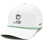 • Add style to your look while protecting your face from harsh sun rays wearing the Black Clover® Snoopy Golfer 5 Panel Mid Rope Adjustable Hat that features the iconic Peanuts character Snoopy on a five-panel design. The curved mid-crown comes with an accent rope and perforations on the back panels allow breathability. Finished with an adjustable snapback for a perfect fit, this hat blends timeless style with a fresh, modern twist.