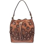 - Bloom with timeless charm carrying Frye® Melissa Floral Bucket. Crafted from antique pull-up leather, this bucket bag exudes effortless sophistication while staying true to Frye's best-selling Melissa collection. The floral details add a romantic touch, making it the perfect companion for shopping sprees, casual errands, or spontaneous adventures. Designed with a spacious main compartment, it keeps your essentials close at hand, while the secure drawstring closure and interior zippered pocket ensure organization with ease. The adjustable leather strap allows for comfortable, hands-free wear, giving you style that adapts to your day.