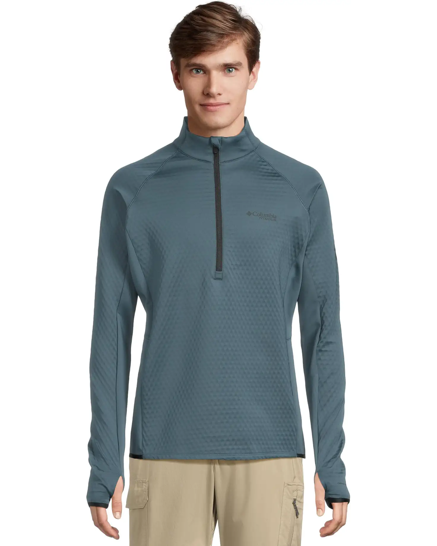 - Find the right layer of warmth when you need it most in the Columbia® Crystal Leaf Omni-Heat Helix Half Zip. Featuring a half-zip with a stand collar, chin guard, long sleeves with thumbholes, an interior locker loop, and a straight hemline.