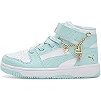- The PUMA Kids® Rebound Layup Mid Hook and Loop shoes are a new interpretation of a classic mid-cut basketball-inspired trainer, adding a stylish touch to your kid's game with the new Puma rebound layup. Combining retro and futuristic basketball-inspired style, these sleek sneakers feature a perforated forefront, clean lines, and the iconic Puma Formstrip to have your kid commanding attention both on and off the court. The faux leather upper of these shoes is made with at least 20% recycled material. These mid-top sneakers are made of a step-in comfort rubber insole that provides soft cushioning thanks to their extra thick heel while the polyester lining keeps your kid's feet cool. Designed with an adjustable hook-and-loop strap and with elastic laces for optimal fit, these sneakers make a great addition to your kid's footwear collection.