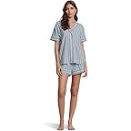 - Get a good night's sleep by wearing the Eberjey® Nautico Shortie Pj Set. The shirt features a notch collar neckline, short sleeves, front button closure, functional chest pocket, and a straight hemline. The pull-on style shorts have a mid-rise silhouette, a comfortable elastic waistband, and a short length. The set features intricate stripe print that elevates the look effortlessly.