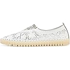 • Sleek and breathable, the Eric Michael® Stella shoes feature a leather upper, breathable leather lining, and cushioned foam insole. This slip-on pair, designed with perforations and an elasticized fit, offers a round-toe silhouette, back pull tab, and subtle brand detailing on the footbed.