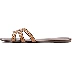 • With a chic square toe silhouette and a nail-head embellished cutout strap, the Seychelles® Treasure sandals are the perfect flat slide to add a little extra flair to any outfit. These slip-on sandals are made of a padded faux leather insole and a faux leather lining. Their leather upper features a cutout strap design. Match your casual outfits and dresses with these flat slides.