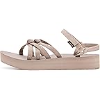 • The Teva® Midform Kena Slim reimagines a beloved classic with a stylish twist inspired by Teva's iconic archives. Designed with a durable polyester upper, this fashionable summer sandal features beautifully knotted straps accented with sleek metal hardware, creating a statement look that's both minimal and eye-catching. The soft nylon lining enhances comfort while preventing irritation, making it perfect for all-day wear. A cushy Ethylene Vinyl Acetate insole provides lightweight cushioning and support, ensuring every step feels soft and energized, whether you're strolling through the city or heading to a sunny getaway. The rugged rubber outsole delivers reliable traction and stability on different surfaces. With an easy hook-and-loop closure, the sandal offers a secure, customizable fit and effortless on-and-off convenience.