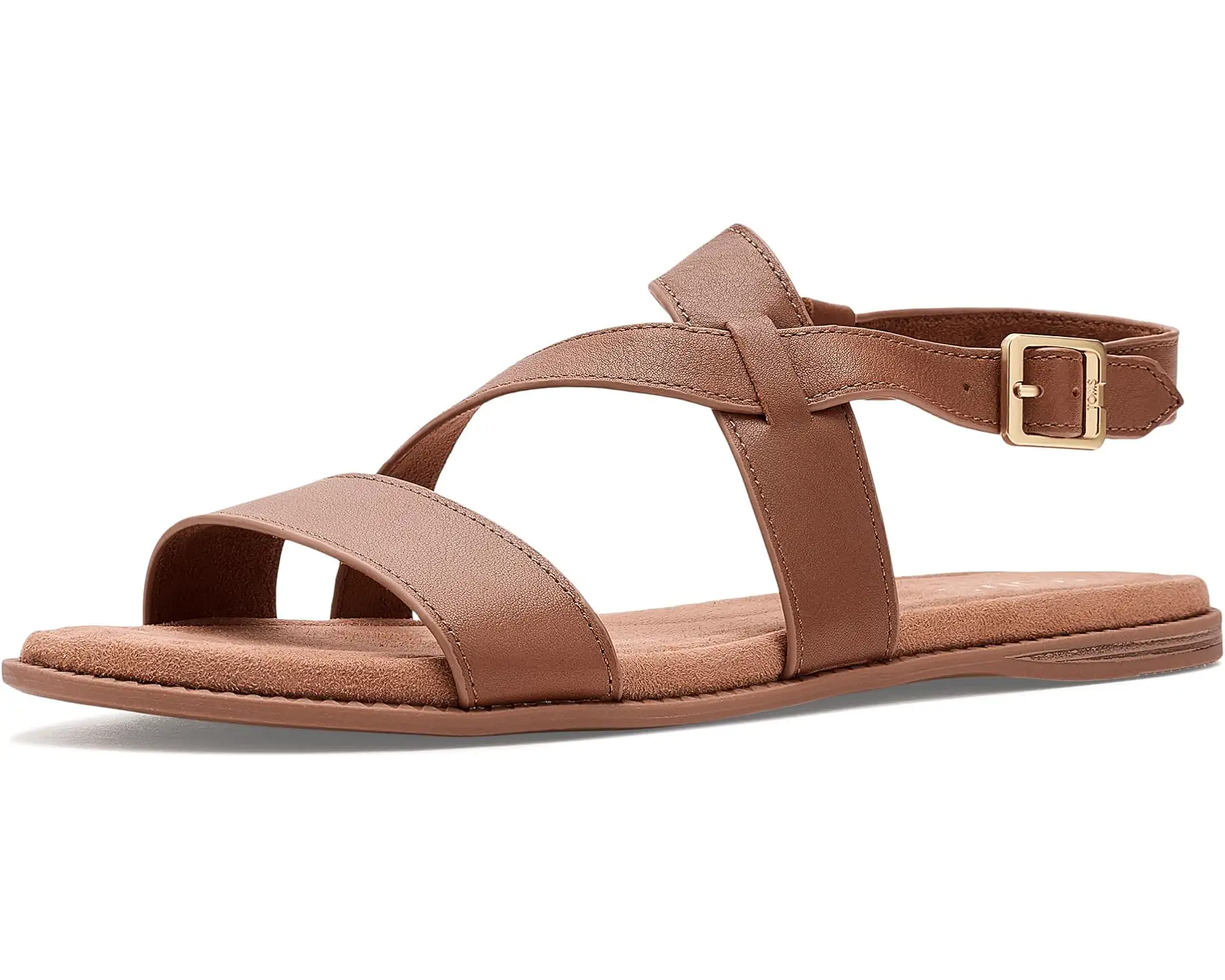 • Refined simplicity for the modern wanderer: TOMS® Mar. Crafted with a smooth leather upper and a soft polyester lining and insole, it wraps your feet in breathable comfort from morning errands to evening strolls. The asymmetrical strap detail adds a modern, stylish twist, while the adjustable buckle closure ensures a secure, personalized fit every time. Built with a durable thermoplastic rubber (TPR) outsole, this pair offers reliable traction and flexibility wherever you go. The faux leather wrap mini wedge subtly lifts your round-toe style without compromising on comfort. Plus, the Custom CloudBound™ deboss foam insoles with arch support deliver cushioned, all-day wear that feels as good as it looks.